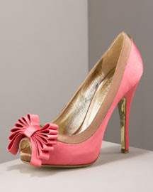 (Rose suede with nude trim. Layered bow on vamp.