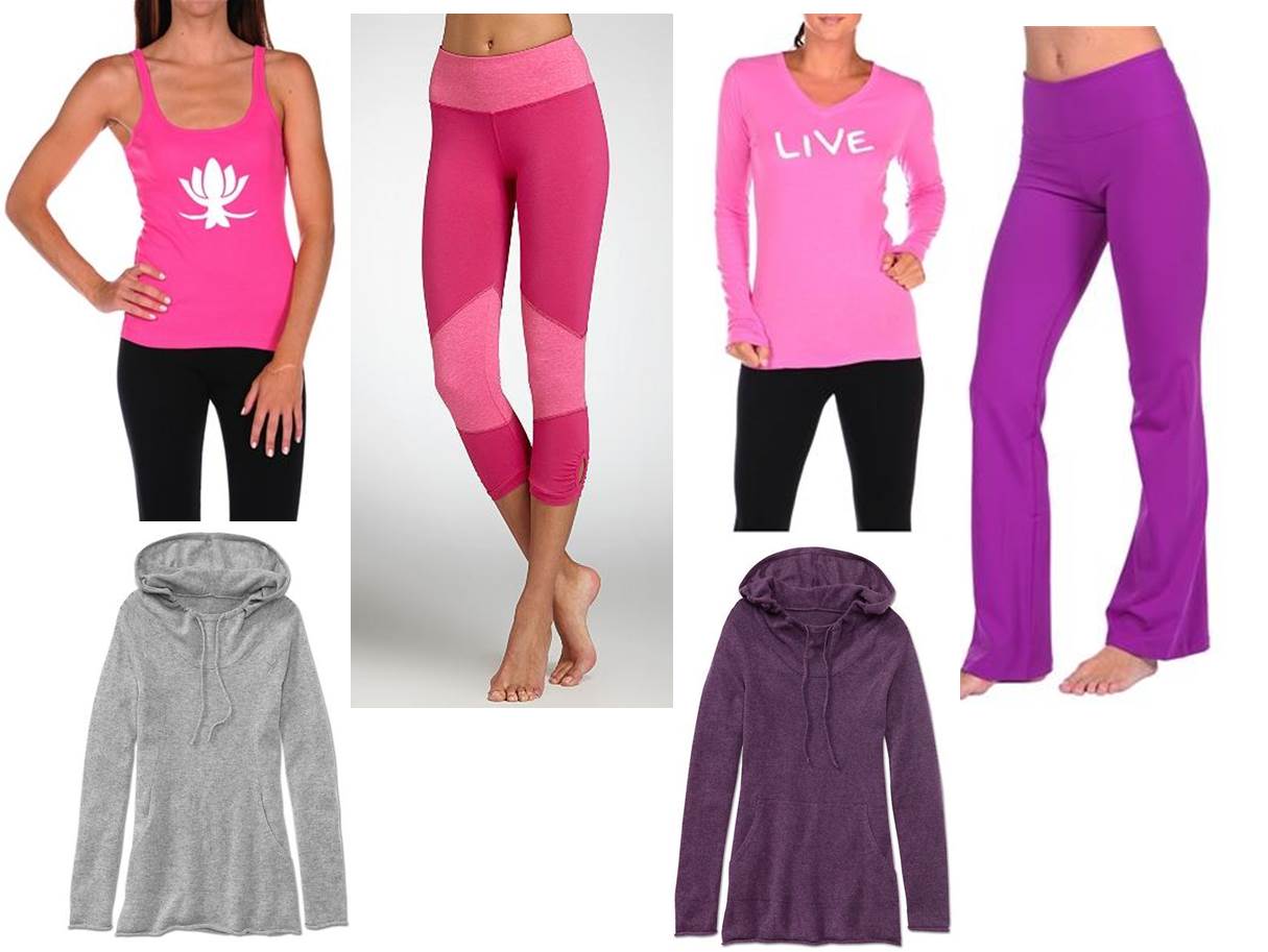 What you wear to the gym can make you more motivated to work out. If you know MG, one of my fav colors is magenta. It’s a statement color and one that puts me in the mood for fitness. If you’re set on wearing black leggings/yoga pants when you work out, then add some color in your tops & pullovers. Pretty colored yoga separates are totes fitness fabulush…