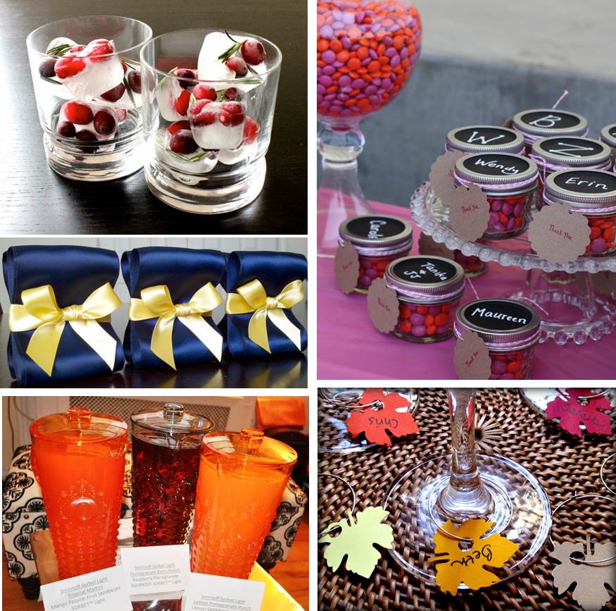 - Festive Ice Cubes. Super easy, cranberry ice cubes will make your cocktails look gorg. For your Thanksgiving dinner soiree, just place a few cranberries in each ice cube well, fill with water & freeze. So pretty! Image: sparkvault.