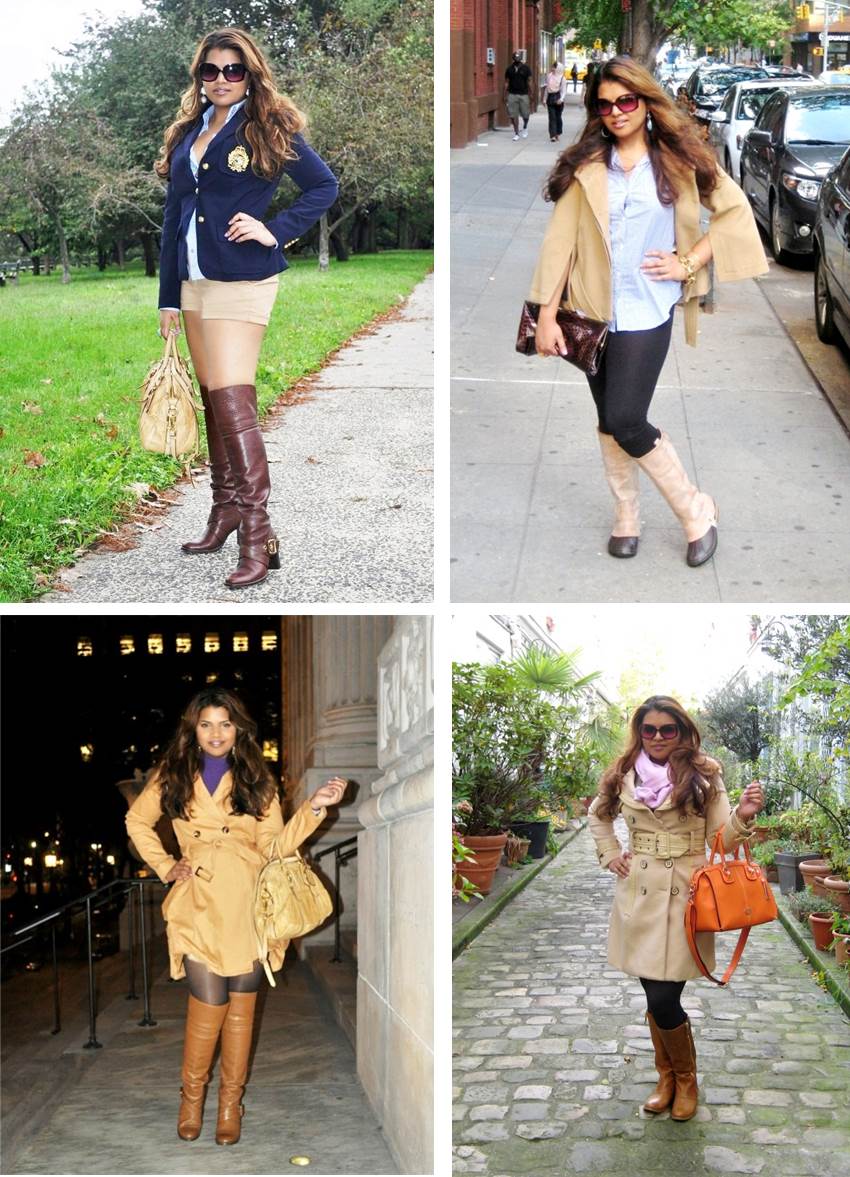 - Fold over knee high-heel boots. I love a boot with the fold-over option. This way I can convert it to thigh high boots whenever I’m in the mood. A heel height b/w 3-4 inches works best for jeans, dresses & winter coats. I wear hose or hose-like socks under these. Check out these Jessica Simpson Audrey boots.