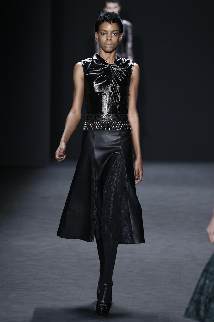 You know what’s sexy? Leather & lace in midi length dresses & fabulush separates. Check out MG’s 5 favorite looks from the Carmen Marc Valvo Fall 2014 collection…