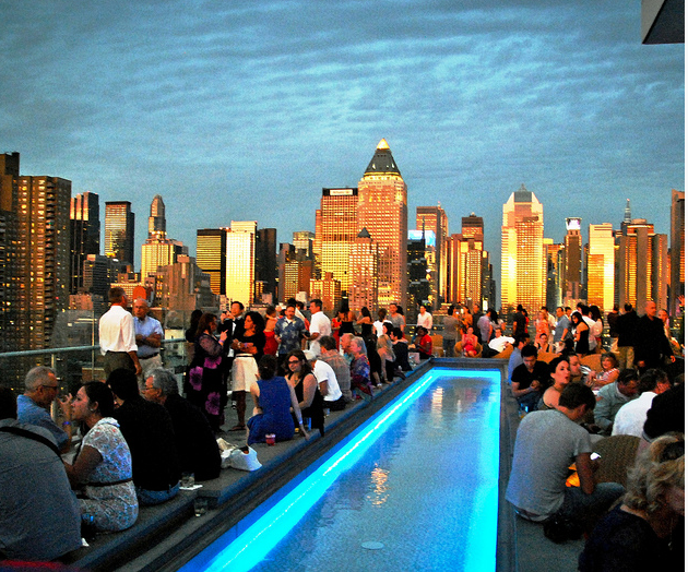 Located in the Ink 48 Hotel in Hell’s Kitchen, this rooftop lounge offers expansive views of the West side & Hudson River. Make date night plans during the weekdays, as weekends can get super crowded.